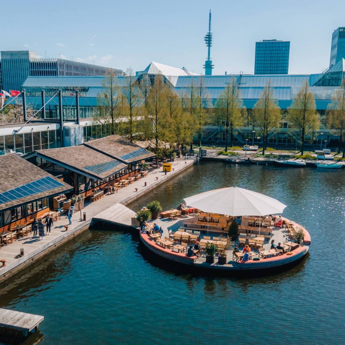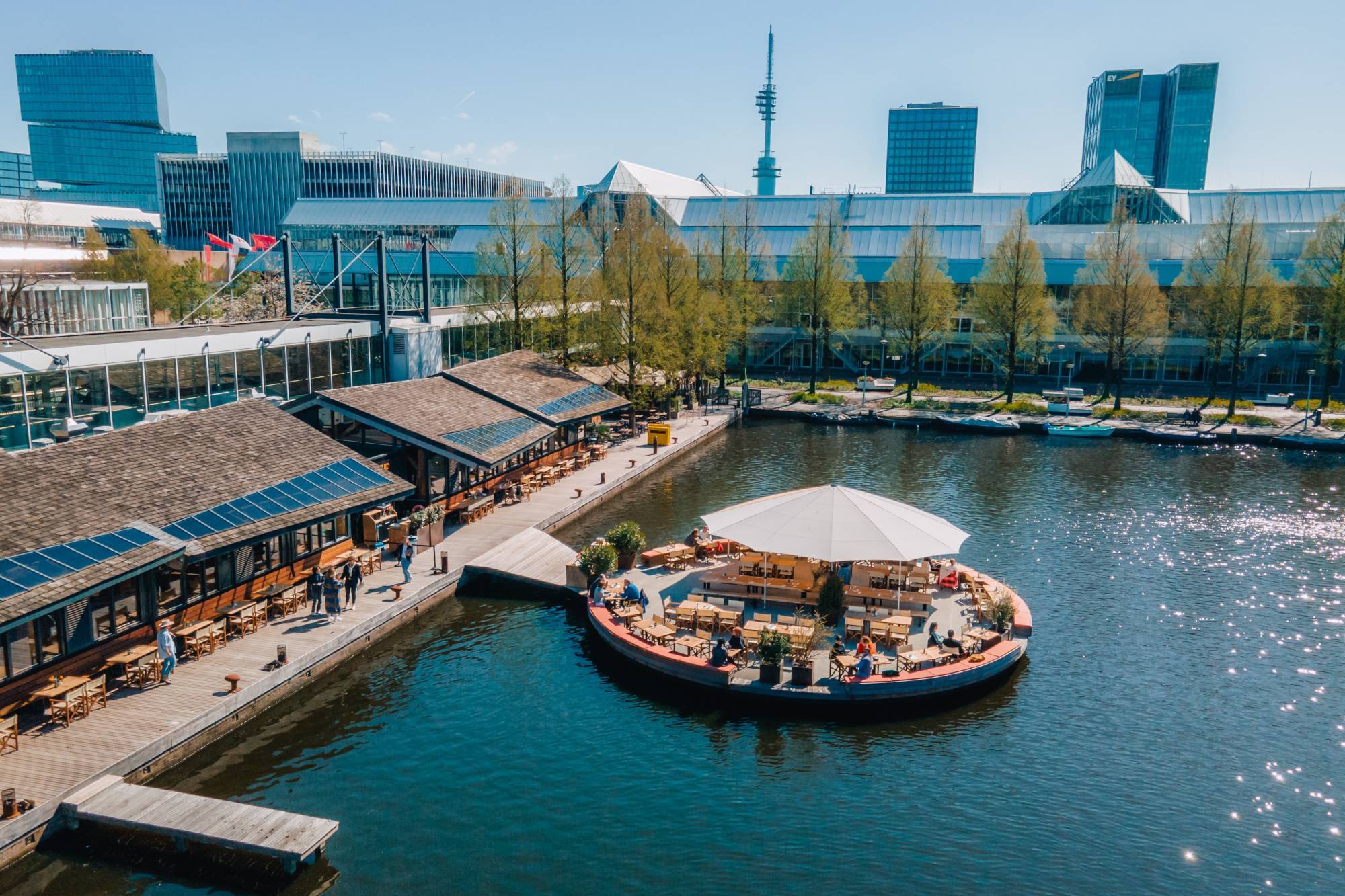 Strandzuid, vlak achter de RAI. Strandzuid is het gezelligste stadsstrand van Amsterdam. Deze waterrijke en groene plek is een oase van rust midden in de stad en daarom de uitgelezen nieuwe finishlocatie van de Amsterdam City Walk.